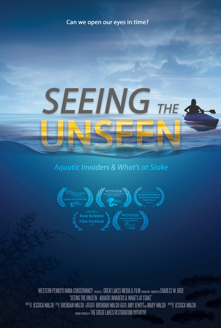 Click the play button below to watch the 44-minute film: “Seeing The Unseen: Aquatic Invaders & What's at Stake.” This film highlights the many negative impacts of aquatic invasive species on Lake Erie and its watershed and nearby regions, and the work being done to raise awareness about and mitigate the risks from invaders. A generous grant from the Great Lakes Restoration Initiative made this film possible.