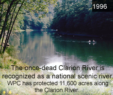 1990 WPC protected 2,731 acres in the Laurel Highlands, including three separate parcels totaling 1,036 acres in the Quebec Run Wild Area in southern 1991 Fallingwater voted “Best All-time Work of American Architecture” by the American Institute of Architects. WPC acquired USX property in Erie County to create a new 3,131-acre state game lands that will be named the David M. Roderick Wildlife Reserve in honor of the Western Pennsylvania Conservancy staff and volunteers build a peregrine falcon nesting box atop Pittsburgh’s Gulf Tower. (see photo)