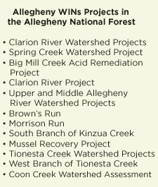 | Nonprofits Allegheny Outdoor Club Brokenstraw Watershed Council Elk County Freshwater Association Kinzua Fish & Wildlife Association Pennsylvania Council of Trout Unlimited (Allegheny Mountain, Cornplanter, Black Cherry and Iron Furnace Chapters) Pennsylvania Environmental Council – Northwest Office The Nature Conservancy University of Pittsburgh, Bradford Campus – Environmental Studies Club Western Pennsylvania Conservancy – Allegheny Regional Office |